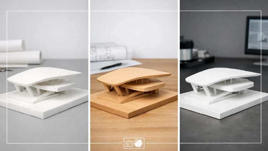 در پروژههایی که مدل قرار است برای مدت طولانی نگهداری شود یا در جلسات متعدد ارائه گردد، متریالهای چوبی گزینه مناسبتری هستند. چوب امکان پرداخت دقیقتری به سطوح میدهد و حس استحکام بیشتری منتقل میکند.