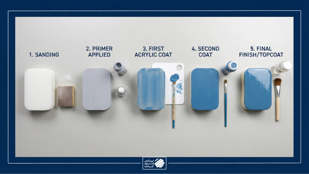 | PU Foam | اکریلیک و رنگهای آبپایه | پرایمر نرم، سیلر آبپایه | اسپریهای قوی حلالی | مجسمه و مدل سبک |